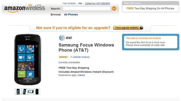Mixed reviews coming on Windows Phone 7 launch in US today. Samsung Focus is sold out on Amazon. Could it be Manufacturing/Supply chain issue?